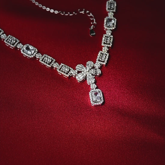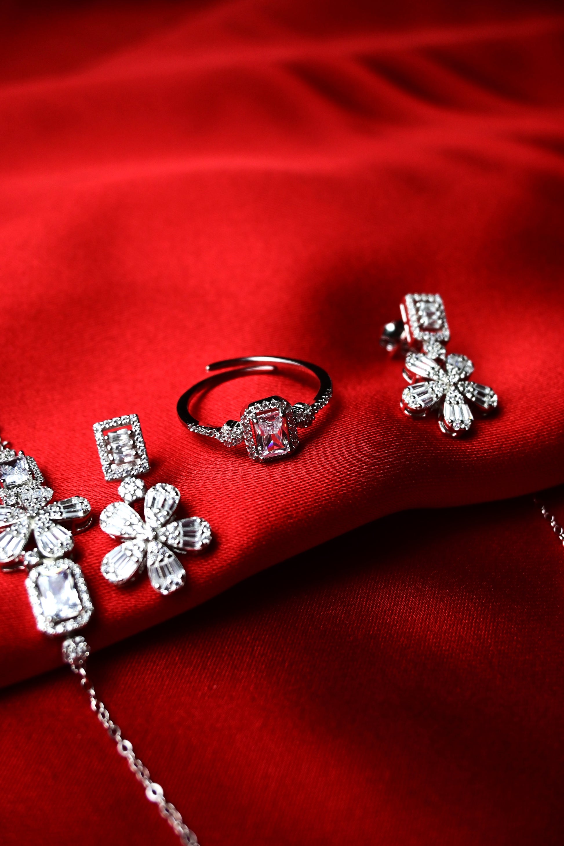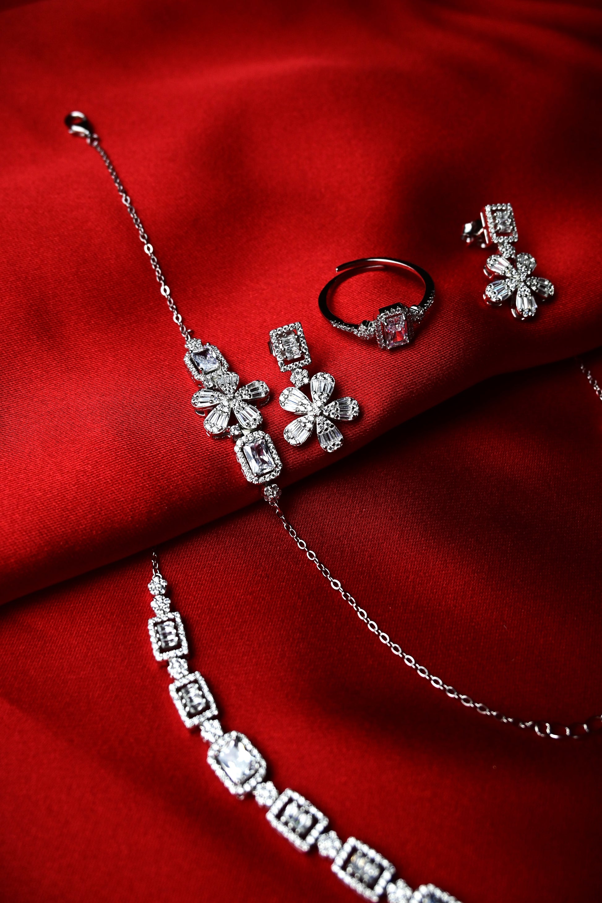 925 Ayar Gümüş Çiçek Desen Zirkon Taşlı 4'lü Set