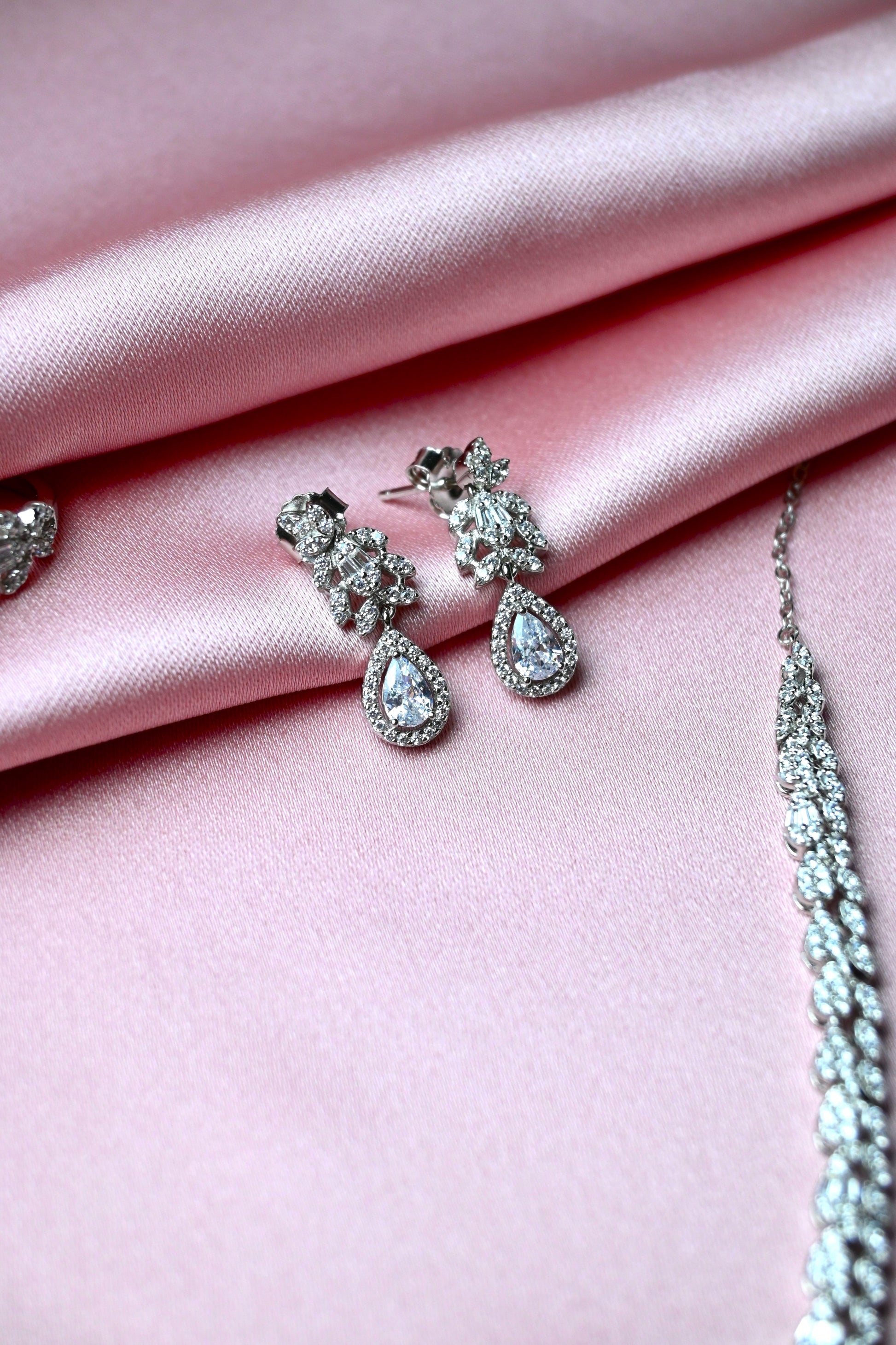 925 Ayar Gümüş Damla Kesim Set Zarif Takım