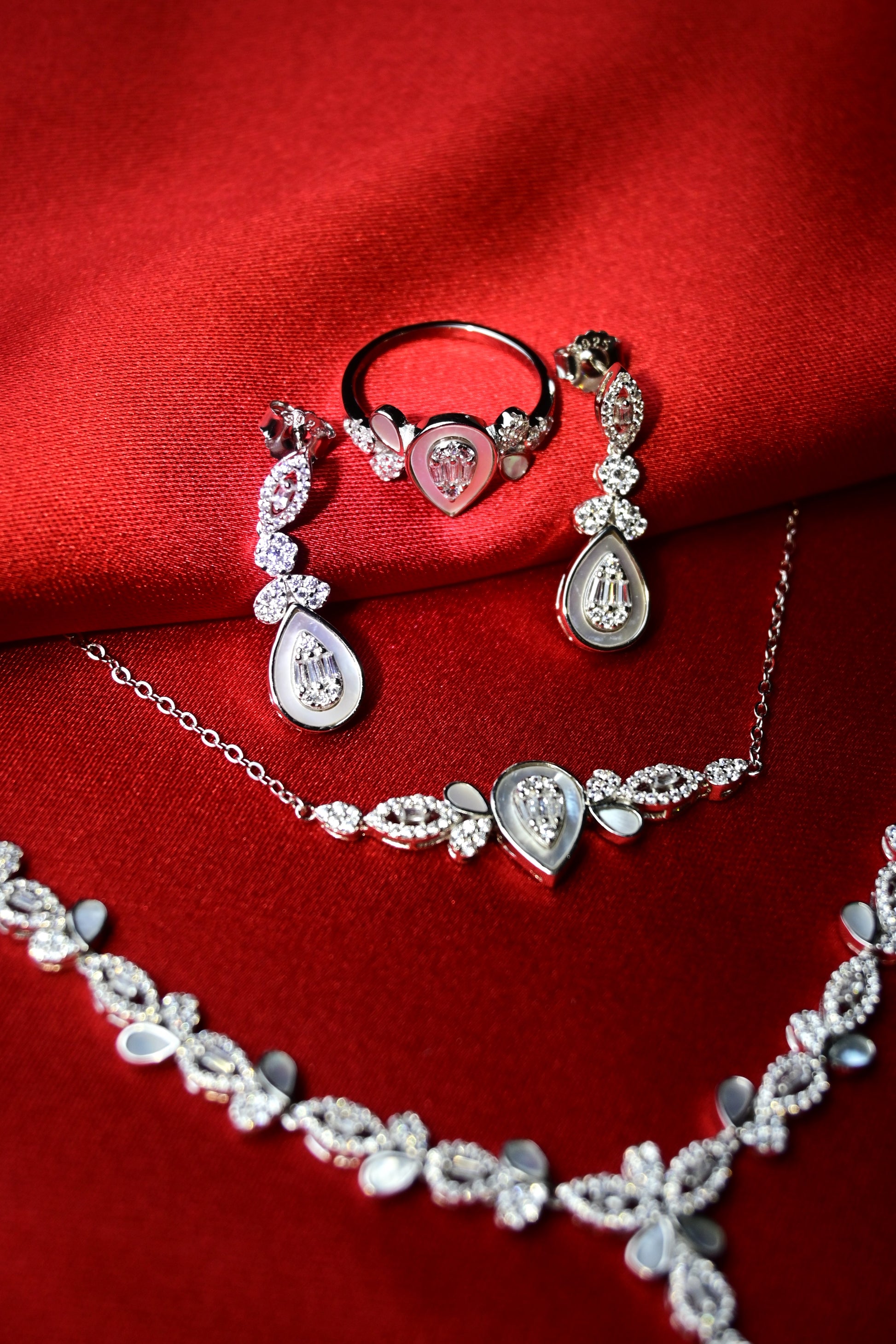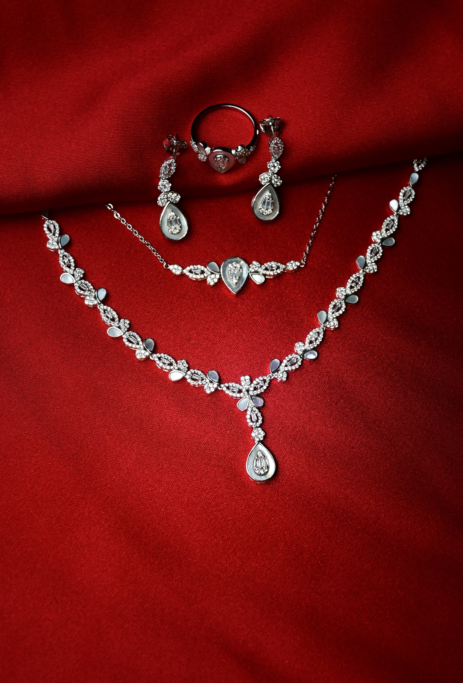 Bu sette kolye, yüzük, küpe, bileklik bulunmaktadır
