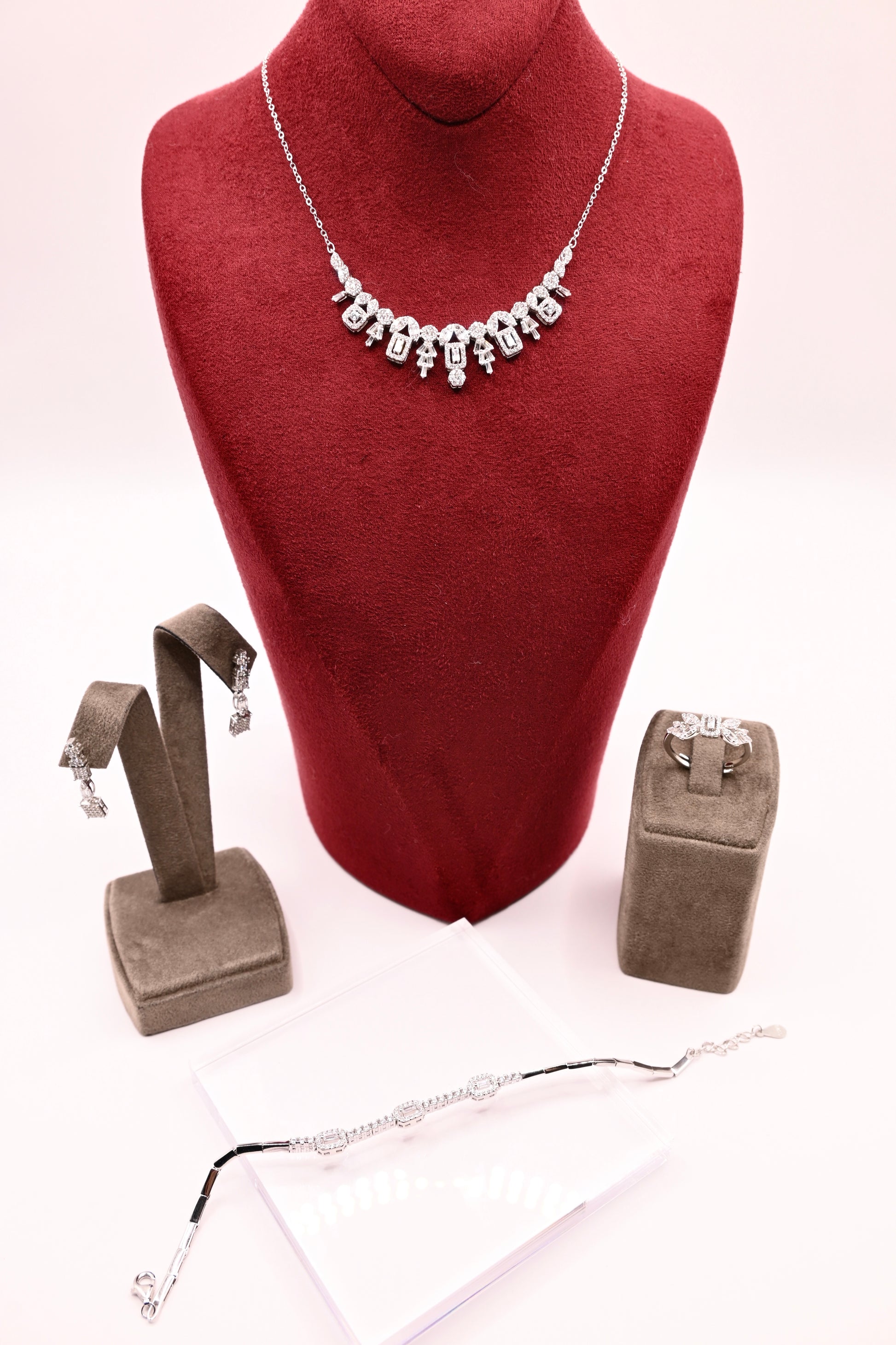 925 Ayar Gümüş Su Yolu Baget Model İthal Zirkon Taşlı Kolye, Bileklik, Küpe, Yüzük Düğün Takı Seti